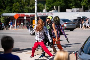 Jau pa gabalu, tuvojoties Ostinas centram tālumā redzam kapitoliju. Piestājam, lai to nofotografētu un attopamies Ostinas hipsteru rajonā – dienvidu daļā, kur ir ēdienu furgoniņi, jau pieminētie zābaku veikalu un suvenīru bodītes. Redzam kādu puisi, kurš karstajā svelmē, pašā saulainākajā vietā dejo – tam priekšpusē un aizmugurē uz redelēm pielikti manekeni, kas kustas tieši tāpat, kā viņš, un no attāluma izskatās fantastiski, ap viņu pulcējas interesentu pūlis!