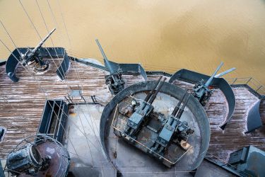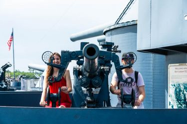 Šis karakuģis ir viens no septiņiem kuģiem, kas bijuši izmantoti abos pasaules karos, pirmais karakuģis, kas kļuva par pastāvīgu muzeju un ir atzīmēts kā ASV vēsturiskas nozīmes objekts. Uzkāpjot uz kuģa, patiesi var novērtēt to, ka puišiem ceļojumos ir citas intereses! Ar gluži citu entuziasmu tiek pētītas ekspozīcijas par dzīvi uz kuģa (te ir gan operāciju zāle, gan virtuve, gan kapteiņu pusdienu zāle!), un izmēģināti dažādi šaujamie, uz kuriem var pagrozīties uz riņķi, tēmējot. Mēs kāpjam līdz pat šai augšai un lienam visdziļākajās vietās, kur todien ir atļauts. Tā kā jau ir pēcpusdiena un laiks braukt tālāk, uz pretējā pusē esošo San Jacinto pieminekli mēs tā arī neaizbraucam, taču draugi, kas tur ir bijuši, atsaucas par to atzinīgi!