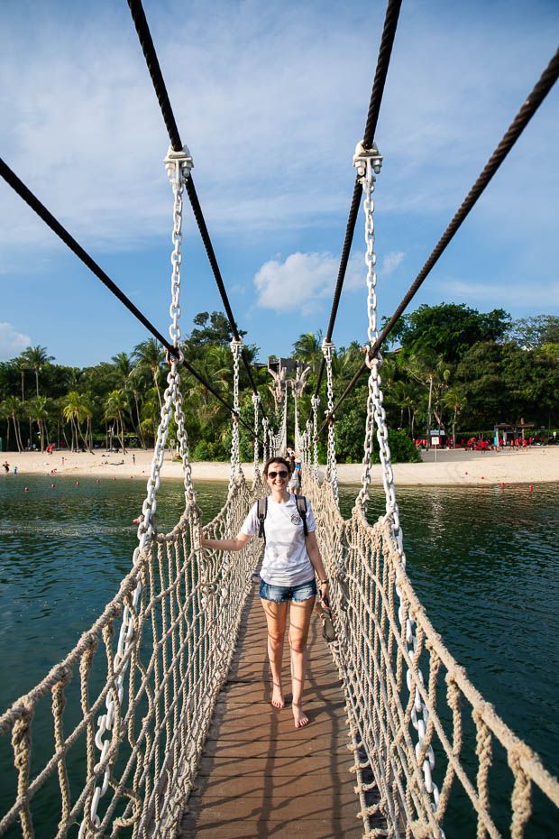 Nākamās dienas plānā mums ir Sentosas sala, kuru mums ieteica kāds cits ģimenes draugs. Uz to var doties ar trošu vagoniņu, šoreiz gan mēs neizvēlamies to darīt, bet, ja to plānosi, biļetes var iegādāties šeit. Te ir gan Universal Studios (biļetes jau laicīgi var iegādāties šeit), gan ūdens atrakciju parks, kukaiņu un taureņu parks un akvārijs. Cilvēku pūļi arī šeit bija milzīgi, te mēs gribam redzēt trīs vietas – lielo akvāriju, kas savulaik bijis lielākais pasaulē, pludmali un vakara šovu. Ieejas maksa akvārijā nav tā mazākā, un, spiežoties cauri cilvēku pūļiem, spriedām nez kad te būtu jānāk, lai izvairītos no tiem, jo šādi akvārija apmeklējums noteikti būtu baudāmāks. Taču akvārijs ir iespaidīgs! Biļetes uz to ir pieejamas šeit.