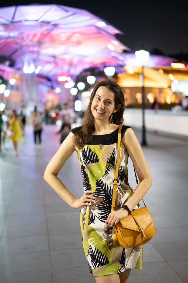 Mums vēlāk stāsta, ka salūts esot katru sestdienas vakaru, tāpat, krastmalā notiekot arī bezmaksas koncerti. Vienmēr gan var vienkārši pastaigāties, ēst saldējumu un baudīt skatu – šovu pie Marina Bay Sands, kas izgaismo visu apkārtni, duriana māju, kas pēc tāda tiešām izskatās, un tai netāli esošais durianu tirgotājs to vēl papildina ar “aromu”, un debesskrāpju gaismas.