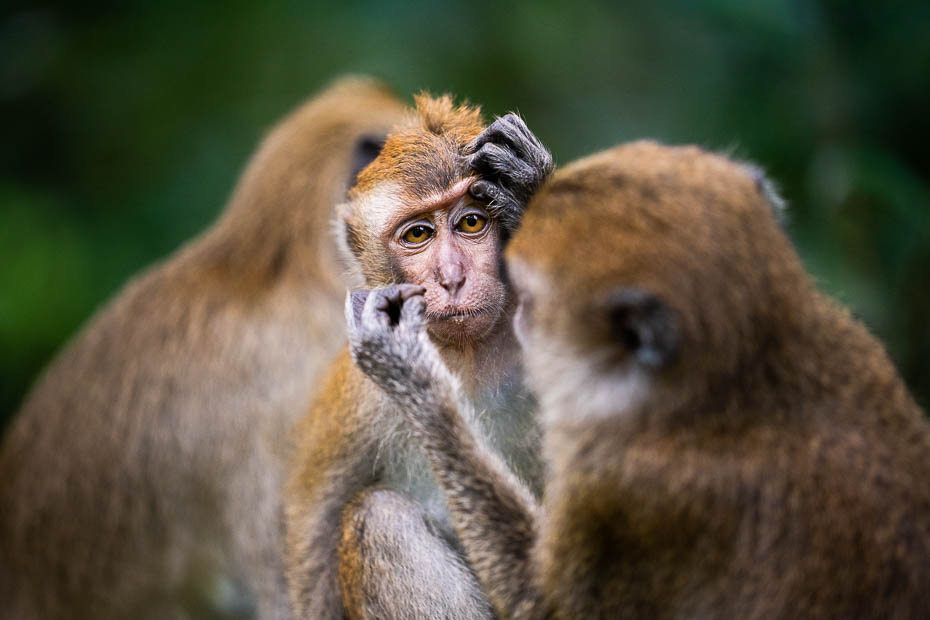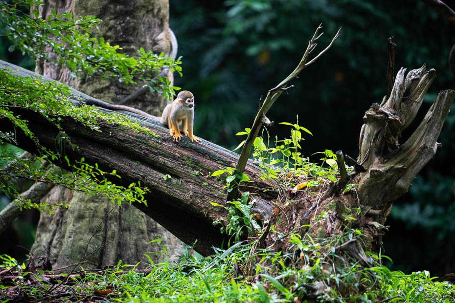 Pa ceļam satiekam mērkaķīšus. Tos mežā var jau laicīgi sajust pēc smakas. Daži sēž kokos, citi zemē, kāds ēd augļus no blakus esošā koka, viens lasa no otra nost kukaiņus. Taču nepatīkamākais skats ir ieraugot, ka viens spēlējās ar izdegušu spuldzīti, un blakus zemē tādas ir vēl vairākas. Pārsteidz, ka pat Singapūrā ir problēma ar atkritumu izmešanu mežā. Te tos acīmredzami kāds bija atvedis ar nolūku izmest, un tā tie nonākuši dzīvnieku rokās. Ja citādāk parkā ir diezgan kluss, tad pie tiltiņa pāri koku galotnēm gan cilvēku ir pavairāk. Tomēr parkā ir arī kāda negaidīta tikšanās, domās iegrimušai ejot pa taku, man blakus pēkšņi atskan: “Labdien!” Kamēr attapos pagriezties, sveicinātājs jau bija gabalā! Latvieši ir visur!