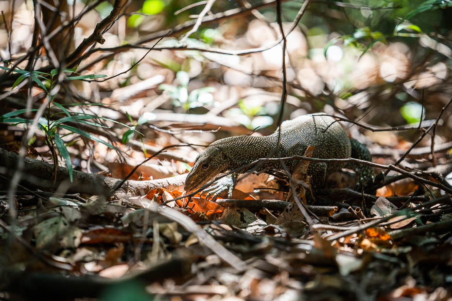 Bez tropiskajai vietai piederīgajiem skatiem kā mangroves un skaņām kā kukaiņu sisināšana, redzam un dzirdam arī kādu citu skatu – netālu atrodas lidosta, tāpēc ik pēc pāris minūtēm pavisam zemu pārlido lidmašīnas! Kādā brīdī arī pārsteigti ieraugām mežacūkas – te to ir liela populācija, jo tām nav dabīgo ienaidnieku! Diemžēl, ir arī skumjāki skati – pludmale pilna maisiņu, krūzīšu un citu plastmasas atkritumu.
