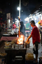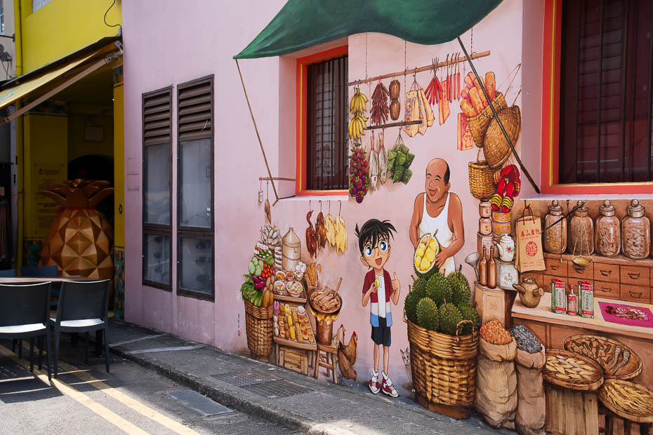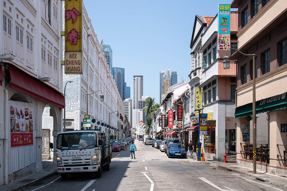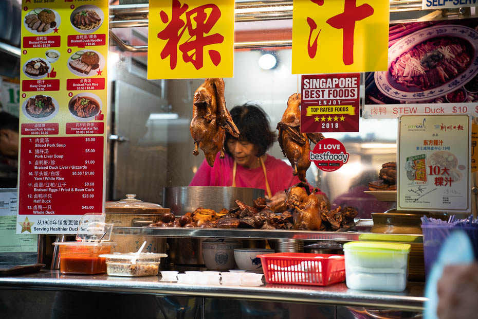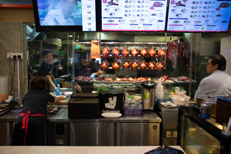 Mūsu pirmā pietura Chinatown jeb ķīniešu rajonā ir Liao Fan Hawker Chan, viena no pirmajām ielu ēdiena bodēm pasaulē, kas saņēma Michelin zvaigzni. Izslavētais ēdiens ir vista ar sojas mērci un rīsiem, un mums porcija garduma izmaksā vien 3 eiro. Kārtība šeit koordinēta – iestājies rindā, samaksā, dabū numuriņu un tad, kad ēdiens ir gatavs, ej pakaļ.