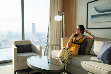 Nākamais solis ir reģistrēšanās viesnīcā. Esam nolēmuši vienu nakti pavadīt slavenajā Marina Bay Sands ar krāšņo bezgalības baseinu, no kura paveras skats uz pilsētas centru. Iepriekš esmu izlasījusi milzīgu daudzumu informācijas par šo viesnīcu, un zinu, ka, rezervējot nevis pašu lētāko numuriņu, bet gan nākamās klases, ir lielāka iespēja, ka numuriņā ielaidīs ātrāk. Tā kā reģistrācijas laiks ir no 15:00, bet mēs ielidojam jau 9:00, tas šoreiz ir būtiski. Shēma nostrādā un numuriņā tiekam jau no rīta! Bijām domājuši uzreiz doties uz smalko baseinu, bet mazliet gan pārvērtējām gan savas spējas, jo atbraucot esam tik pārguruši, ka vispirms aizejam pāris stundas pagulēt. To gan visprātīgāk būtu bijis darīt jebkurā parastā viesnīcā pie lidostas.