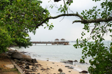 Tālāk dodamies ar kājām cauri visam kompleksam uz pludmales pusi. Diemžēl pa ceļam marķētā orhideju taka izrādās vilšanās, un, lai arī ejamais attālums nemaz nav tik liels, sutīgajā dienā pastaiga nav viegla. Kad beidzot esam pie Palawan pludmales, izbaudām katru sekundi atspirdzinošā vēja. Uzkāpuši skatu tornī, apsēžamies, lai vismaz uz mirkli atvilktu elpu! Gribas arī nopeldēties, bet visur ir izvietotas brīdinājuma zīmes, ka netiek veikta pludmales uzraudzība, jo jau ir pēc darba laika beigām. Redzot, ka citi arī peldas, nolemjam tomēr atveldzēties. Diemžēl ne ūdens, ne smiltis neliekas īpaši tīras, taču spirgtā pelde ir tieši tas, kas mums bija nepieciešams!