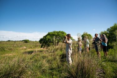 Pavisam tālumā redzam arī jabiru – vietējo stārķi, kas, rēķinot pēc spārnu platuma, ir otrs lielākais putns Dienvidamerikā pēc Andu kondora. Tēviņi ir teju 25% lielāki par mātītēm un to augstums sasniedz 1.50 m. Diemžēl tuvumā milzīgo stārķi tā arī nesanāk apskatīties, tam savulaik netālu no mājas ir bijusi ligzda, bet tagad tos tikai redzam tālumā laukos. Taču diezgan tuvu apskatām kādu citu putnu – Argentīnas nacionālo mūrniekputnu, sauktu par hornero. Turpat netālu arī mērkaķīši – tēviņš ar savu baru. Tie gan sēž labi augstu kokos, un lejā ēnā ir tik daudz odu, ka gribas iziet vējainākā vietā. Labi tuvu redzam arī dažāda veida gārņus, pagalmā ir pilns ar dzeņiem un pļavās redzam tik daudz plēsīgās karakaras, ka drīz vien tās ieraugot, vien nopūšamies “ā, tā atkal tikai karakara”.