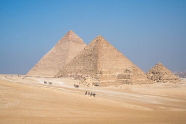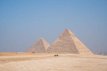 Esot Kairā, noteikti jāapskatās piramīdas! Tās gan nemaz neatrodas Kairā, bet nedaudz ārpus tās, Gizā. Mēs braucam nelielajā automobilī pa salīdzinoši tukšajām ielām, ir gana vēls rīts, lai rīta sastrēgumi jau būtu beigušies, bet ne gana agrs, lai sāktos pusdienlaika spiešanās. Vēroju zilās debesis, mazliet dūmakaino pilsētu un dzeltenīgo apkārtnes nokrāsu, tuksneša ainavas vasarā – mazāk par 35C temperatūra nenokrīt nevienu dienu. Daudzām mājām ir nepabeigti pēdējie stāvi, vai arī – puse mājas ir pabeigta, bet puse – nē. Augšējos stāvos ir novietotas baložu mājiņas. Gids man stāsta, ka baloži pa dienu par sevi rūpējas paši, un tad vakaros tos sasauc saimnieks un baro. Galvenokārt, tos audzē apēšanai. Pēc Aleksandrijā nobaudītā baloža manos plānos to garšot otro reizi vairs neietilpst, tāpēc vien māju ar galvu un cenšos nedomāt par ne pārāk gardo maltīti.