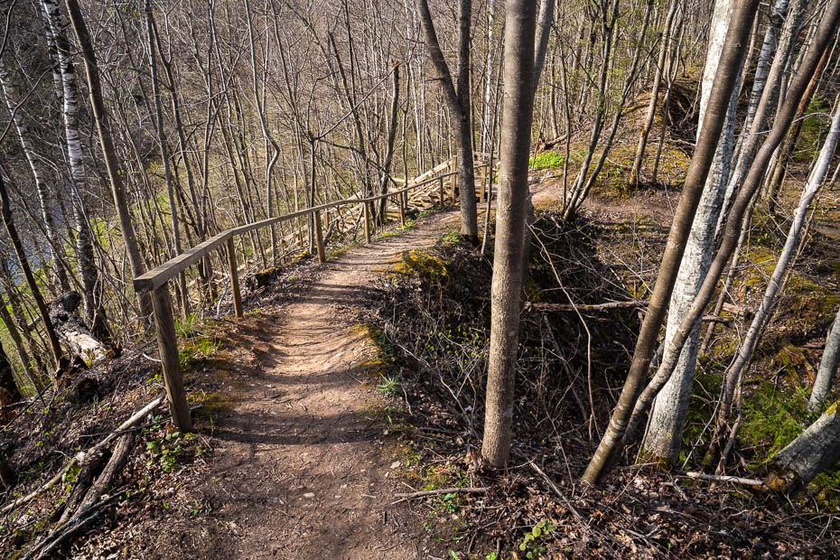 Ja plāno iet visu maršrutu, automašīnu var atstāt Rāmkalnos (kur arī ir daudz nodarbju ģimenei, piemēram, rodeļi, un var pēc tam ieturēt maltīti un nopirkt Rāmkalnu labumus veikalā), un tad pārejot pāri Gaujas tilta, jāiet pa labo pusi gar Lojas upi. Taka nav marķēta, tāpēc sanāk vadīties pēc iemītajām pēdām – dažviet atzarojas vairākas taciņas, lielākoties, lai pienāktu tuvāk kādam no baltajiem smilšakmens atsegumiem. Lai tiktu līdz trasei, mums sanāca diezgan gabalu pamaldīties pa meža takām, tomēr veiksmīgi tikām galā! Mūsu maršrutā sanāca 9km, jo vēl aizgājām pa šosejas malu līdz sarkanajiem atsegumiem, tad gājām atpakaļ pa ceļa malu un ieturējām maltīti “Vīgantos”.