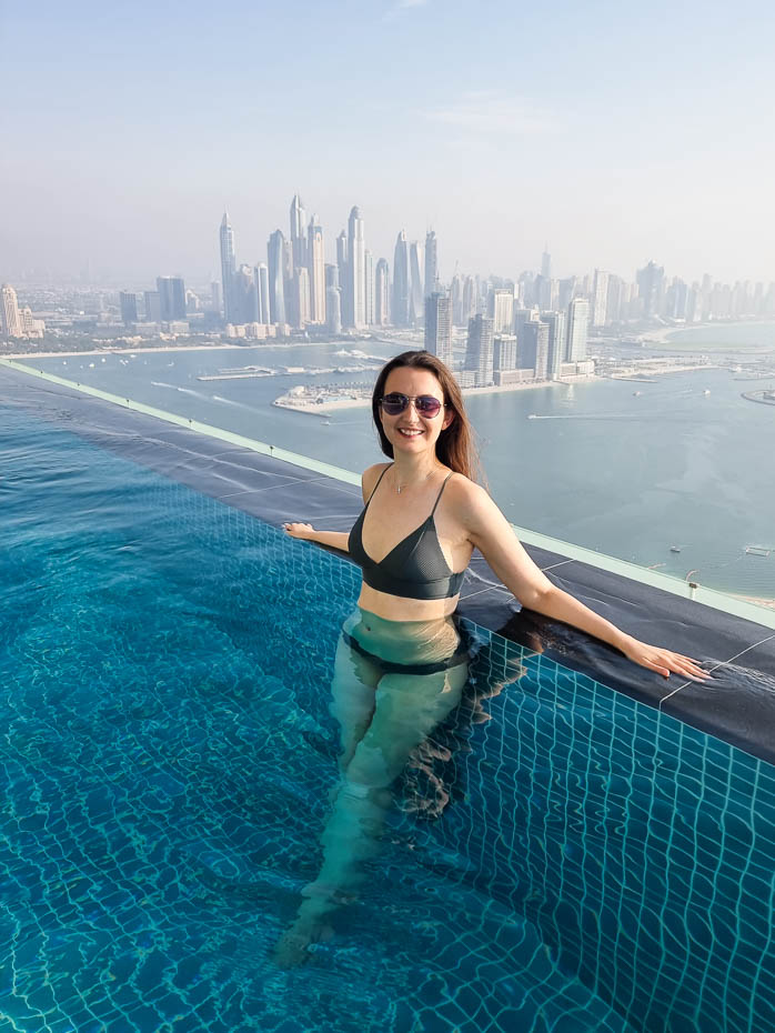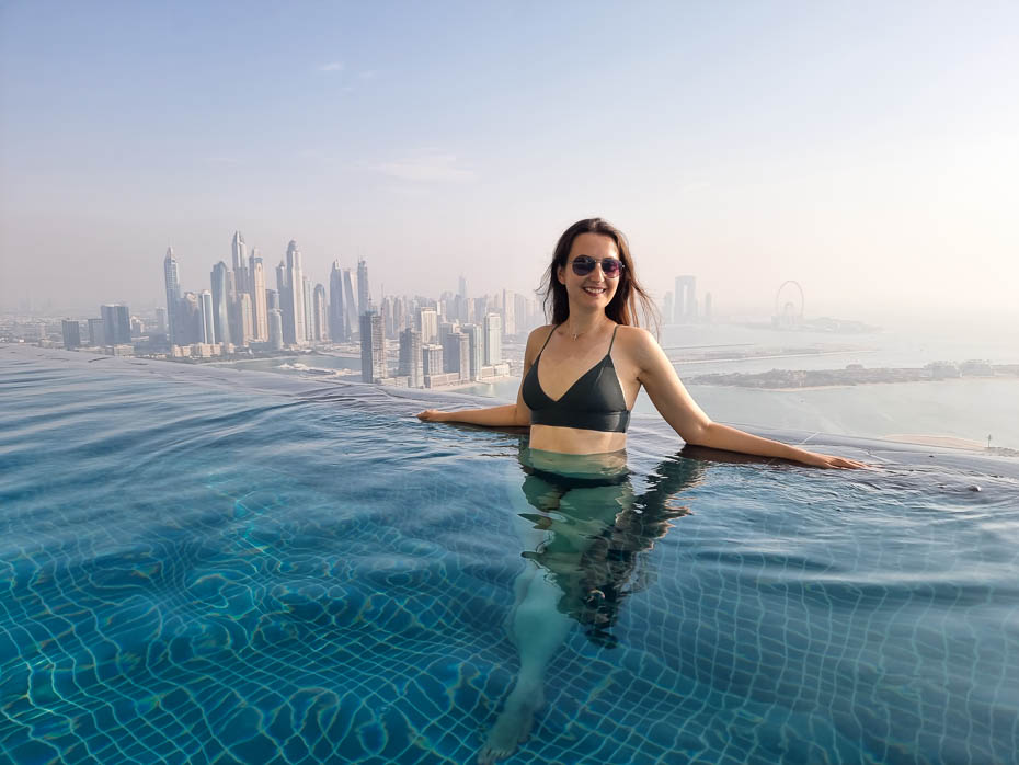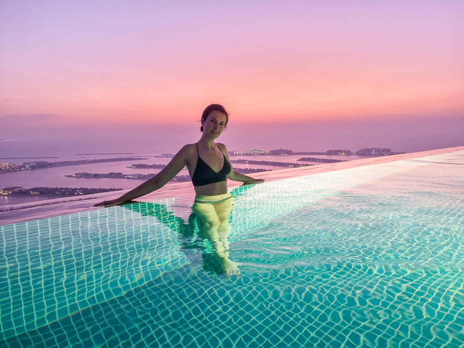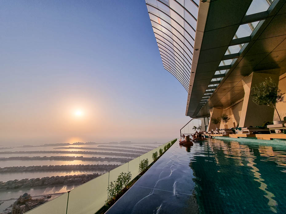 Skati no Aura Sky Pool patiešām ir iespaidīgi, jo iespēja palūkoties uz Palmas salu un apkārtnes debesskrāpjiem no putna (vai drona) lidojuma savām acīm ir tā vērti. Vai mūsu apmeklējums bija 150 eiro vērts? Ņemot vērā, ka Dubaijā nekas nav lēti, tad jā. Taču bildēs redzamā atmosfēra nav gluži tāda dzīvē un manas gaidas neattaisnoja. Lai arī iespaids kopumā palika pozitīvs, otro reizi es uz šo baseinu neietu. Ja salīdzinu ar Marina Bay Sands baseinu Singapūrā, Dubaijas Aura Sky Pool baseinam ir vairākas priekšrocības, vienīgais mīnuss – ārprātīgi skaļā mūzika.