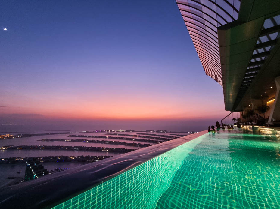 Aura Skypool lounge Dubaijā ir augstākais bezgalības baseins pasaulē, kas izvietots ekskluzīvās St.Regis viesnīcas priekšpēdējā stāvā un ir 200m augstumā. Viena no tā lielākajām priekšrocībām (ja neņem vērā skaisto skatu!) ir tāda, ka tas ir pieejams jebkuram cilvēkam, kas nopērk biļeti un nav jābūt viesnīcas viesim, kā tas ir Singapūras Marina Bay Sands viesnīcā.