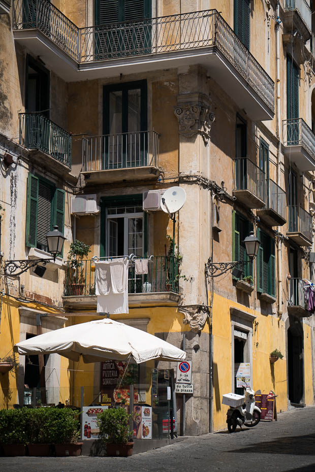 Šeit Itālija ir kā jau filmās par Itāliju. Daudzstāvu celtnes, kas ir tuvu viena otrai, pie logiem un uz balkoniņiem karājas veļa un pat vismazākajās, šaurākajās ieliņās pamanās izbraukt kāds rolleris, taurēdams tiem, kas tūļājas un nelaiž viņu garām.
