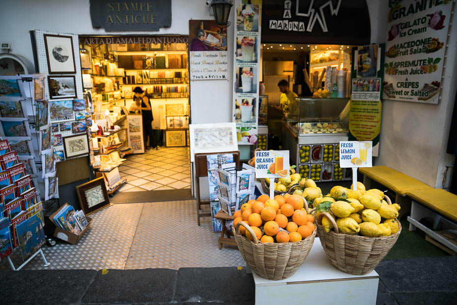 Drīz jau kļūst pārāk karsti, un ar auto dodamies uz Trieste Lungomare, sauktu arī par skaistāko promenādi Itālijā. Mazliet maldāmies, jo nekur nevar nolikt automašīnu. Šeit drīzumā notiks kāds velobrauciens un stāvvietas tiek slēgtas jau laicīgi. Beidzot, atrodam brīvu vietu pie kādas kafejnīcas un uzreiz arī dodamies iekšā – nopirkt cafe crema, tādu kā kafijas saldējuma kokteili, un citronu granitu – ko var nopirkt teju uz katra stūra! Šī mums ir pirmā vietājā iepazīšanās ar garšīgāko Amalfi simbolu – citronu! Vēlākajās dienās tā vien liekas, ka svelmē pārtiekam no granitas un cafe crema! Pēc tā kā nobaudīti vienreiz, šie abi liek atcerēties Amalfi ik reizi, kad tos ieraugām citur – pat, ja tas ir bezpersoniskā kafejnīcā Londonas lidostā! Kā garantēta iespēja aiztransportēties uz Amalfi!