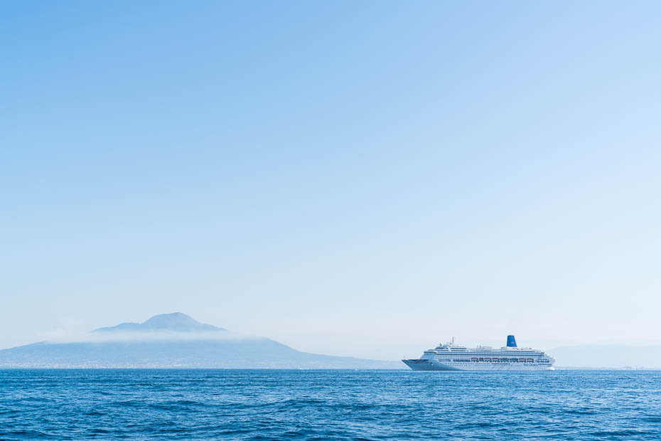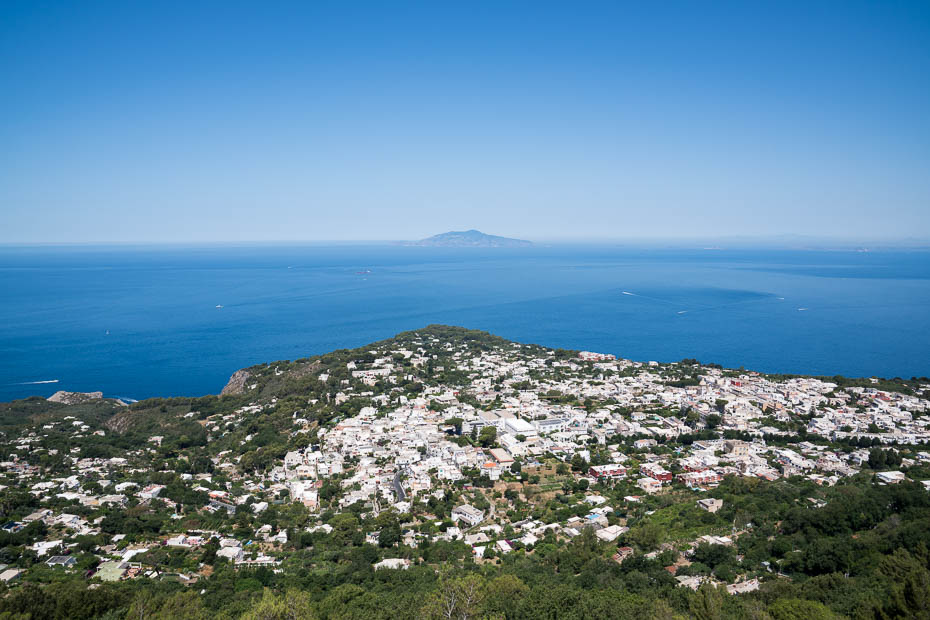 Ir vēl salīdzinoši agrs rīts, kad uzkāpjam uz kuģīša. Automašīnu atstājam Sorento, jo tūrisma sezonas laikā uz salu ar auto var doties tikai vietējie. Pats brauciens pa jūru ir veldzējošs – dūmaka, kalni visapkārt, un kuģi, kas nozūd miglā. Lai tiktu augšā, kalnā, kur ir visi labākie skati, gaidām rindā uz autobusu. Sākam sarunu ar kādu rindā stāvošu vīrieti, tūristu no Austrālijas, kurš padalās, ka viņam esot “pārvietojamais kondicionieris” – mugursomā ieliktas vairākas ūdens pudeles, kas iepriekš noturētas nakti saldētavā. Karstajā laikā ūdens kūst, un ir patīkami vēss dzeršanai, bet, kamēr vēl vēss, dzesē mugursomu un muguru, tāpēc mazāk svīst! Šo padomu liekam aiz auss, noderēs!