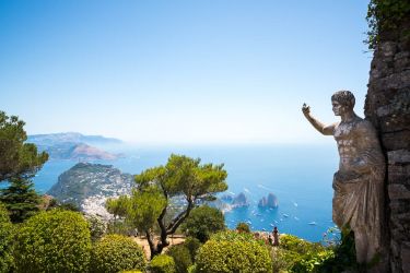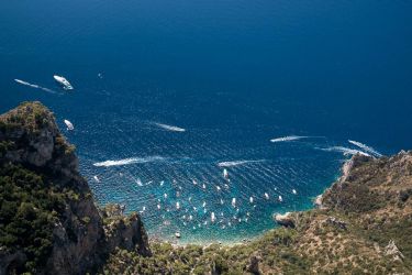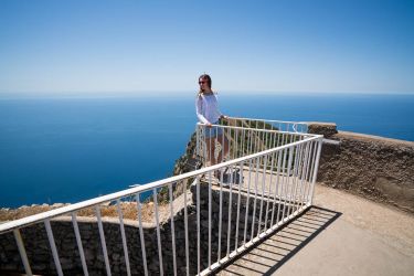 Tālāk gribam uzbraukt augšā kalnā, tam ir pieejams trošu ceļš, kur katram ir sava sēdvieta. Skati pa ceļam nav īpaši iespaidīgi, taču, kad sasniedzam Monte Solaro, no šejienes ir grūti aiziet prom. Skats uz nelielu līcīti ar klintīm, jahtām un buru laivām tām blakus, košie ziedi un neliela skulptūra paliek atmiņā kā viena no spilgtākajām atmiņām visā Amalfi brauciena laikā.