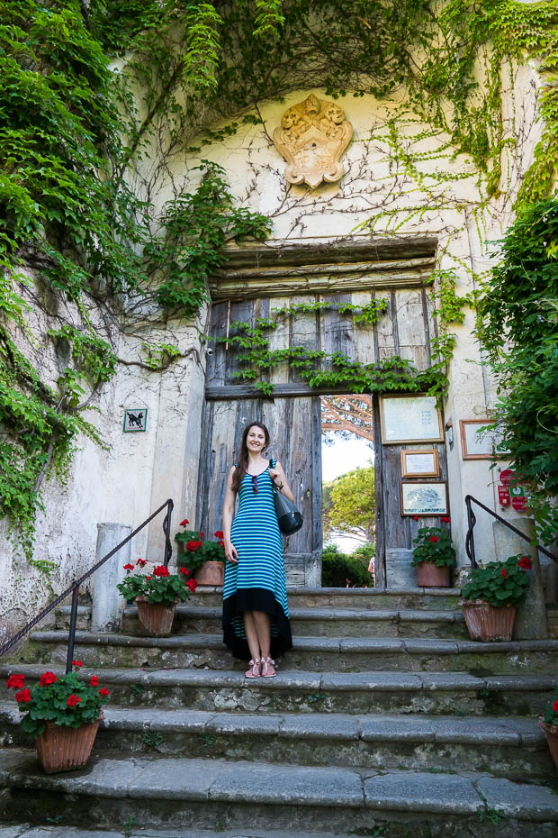 Villa Cimbrone mūsdienās ir luksusa viesnīca, populāra kāzu vieta, taču, arī šeit nepaliekot pa nakti, ir iespējams aplūkot tās skaistos dārzus. Kad mēs atnākam, pirmais solis ir apēst saldējumu un mazliet atpūsties. Jāsaka, skats, kas paveras no šīs terases, paliek kā viena no skaistākajām vietām, kur jebkad esmu apēdusi šo auksto gardumu! Kamēr atpūšamies, vērojam jūru tālumā, košos ziedpodus un skulptūras, kad kāds puisis nometas ceļos un bildina savu ceļabiedreni. Terase ir gandrīz tukša, un šo skatu vērojam vien mēs un kāda sieviete, kas metas pāri fotografēt.