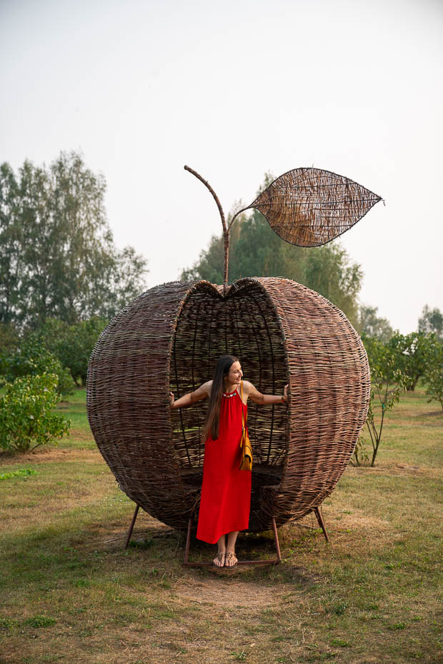 Tālumā paveras vēl viena dāliju ekspozīcija, tad, kāds stādījums ar informatīvām lapiņām, kas te augs pavasarī, liliju dobe, kurai apkārt ir kurmju atbaidīšanas ierīces un pie dīķa novietojies dārznieka namiņš, kas no ārpus liekas tik glīts, ka tā vien gribas tur palikt pa nakti. Citā dīķi, pīļu ģimenīte plakšķina knābjus, kaut ko ķeksējot ūdenszāles, un tālumā dzird zirgus – tepat teritorijā ir staļļi. Govis gan ir no kāda mākslīga varianta, izvietojušās dārzā līdz ar kādu ābola formas lapenīti. Tai apkārt gan nevis ābeļ, bet ceriņdārzs. Vajadzētu te atgriezties pavasarī!
