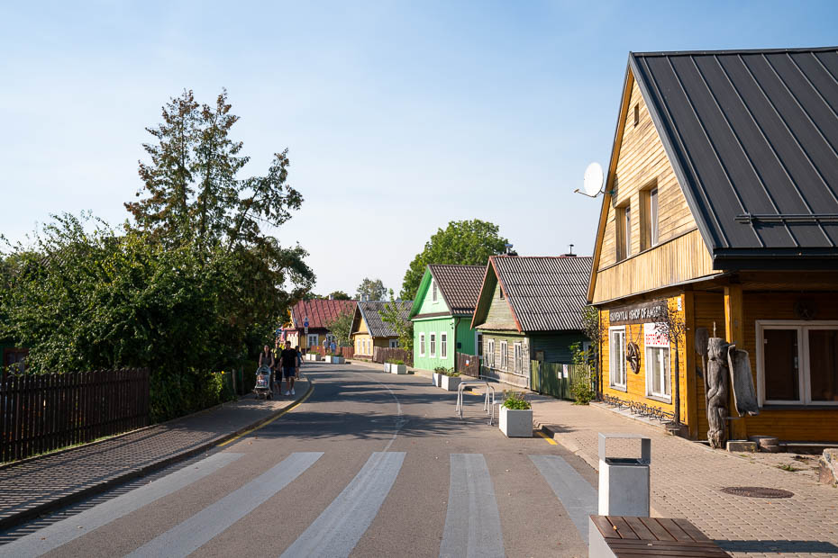 Pēc pils apmeklējuma spriežam, ka pusdienosim ārpus Traķiem, cerībā, ka citur būs nedaudz mazāk cilvēku. Google Maps skatos kur kādi restorāni ir nedaudz ārpus pilsētas un uzdodos “Akmenine Rezidencija”, pāris minūšu brauciena attālumā. Vieta kartē ir apzīmēta, bet kur jāiet, nav skaidrs. Skatāmies satelīta karti, vajadzētu būt tuvāk ezeram, labi, paiesimies brītiņu un cerēsim, ka te nav brīvā vaļā skrienošu suņu. Pēc pārdesmit metriem ieraugām informatīvu zīmi un pēc brīža sasniedzam ārkārtīgi mīlīgu restorānu ezera krastā. Mājīgi noformēta terase, lapenītes, ābeļdārzs. Kad pienāk viesmīlis, pēc izskata, restorāna saimnieka dēls, sagaidām, ka atnesīs ēdienkartes, bet nē – izrādās, viņi strādā pēdējo dienu vasaras sezonā un var dabūt tikai pāris ēdienus, kurus mums arī noskaita. Izvēlamies šašliku. Līdz ar šašlika atnešanu pie mums parādās mīlīgs dīcītis – kaķēns, kas pamīšus pienāk pie viena un otra galda gala, cerot iežēlināt uz kādu kumosiņu. Izskatās labi aprūpēts, kārtīgi apvēlies un nolemjam neiejaukties viņa saimnieka nospraustajos ēšanas paradumos.