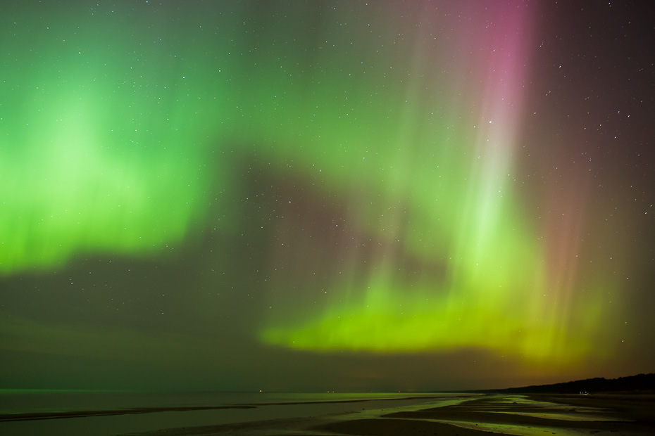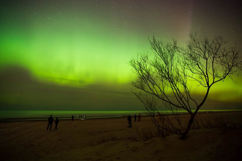 Zemāk redzamais attēls uzņemts, kad bija viens no spēcīgākajiem uzliesmojumiem pēdējo gadu laikā un faktors sasniedza 9KP un šāds skats bija Vecāķu pludmalē. Daži saka, ka tobrīd prognožu sistēmā bijusi kļūda un patiesībā esot bijis vien ap 7KP.